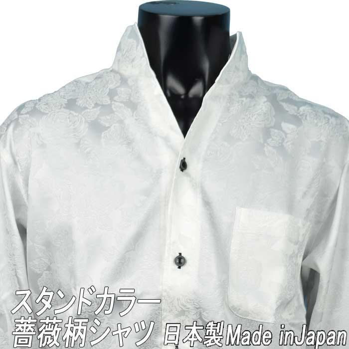 スタンドカラーシャツ バラ花柄 日本製 ドレスシャツ マオカラー ゆったりめ 白 イタリアン 長袖 メンズ ワイシャツ ブランド おしゃれ Hs 50w Fts メンズファッション ちょいワル おしゃれ 通販 Yahoo ショッピング